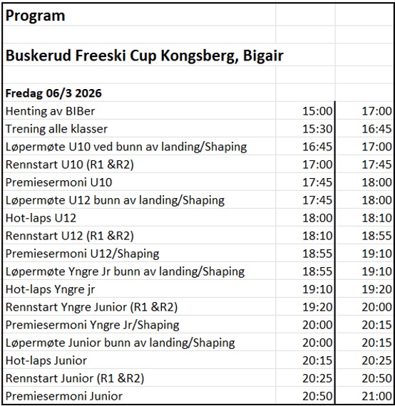 Renndetaljer og program vil bli lagt ut på arrangementet på FB (Buskerud Freeski Cup – Snowstock) i god tid før renndato.
